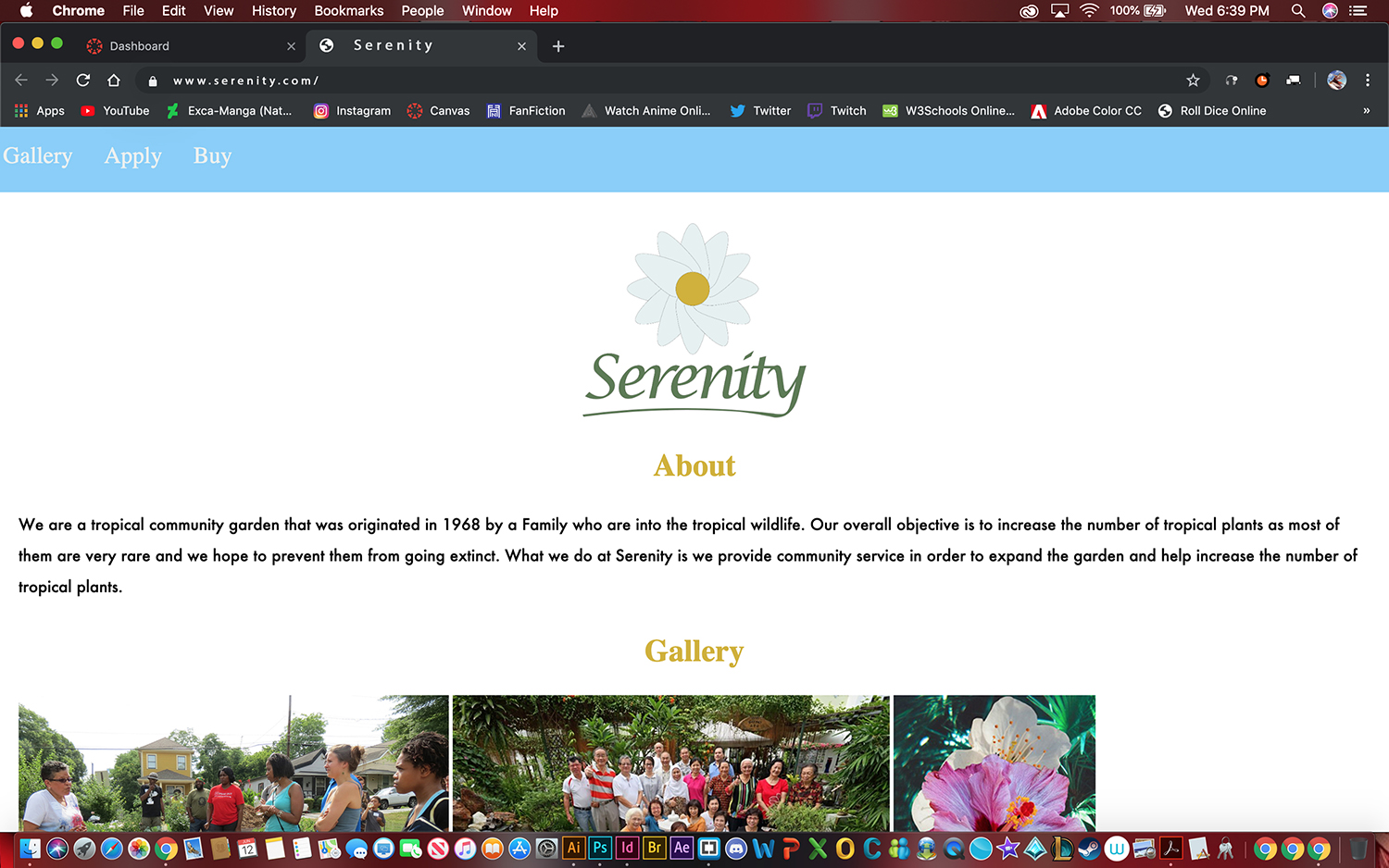 Serenity was inspired by two main ideas: There are only a few gardening businesses with tropical nurseries and Helping communities can help protect the earth from pollution.