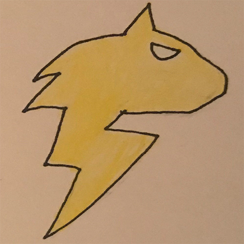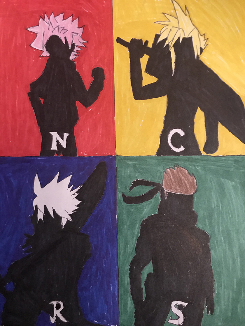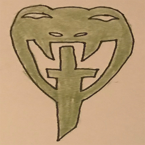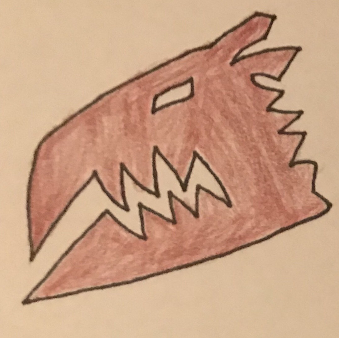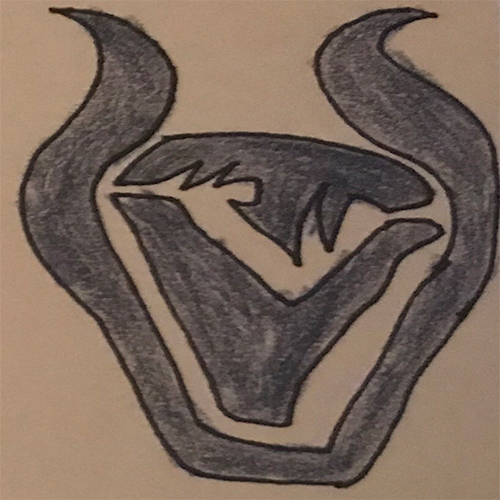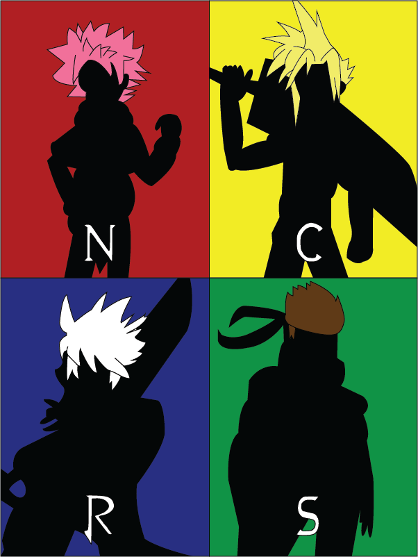 Before arriving to the final logo, these are the first four logos that I've made. They were created by the end of the first term and each of them represent a theme to some characters: Red dragon represent a fiery passion, yellow wolf and lightning bolt representing loyalty and pride, blue demon-like symbol representing mystery, and green snake representing stealth.